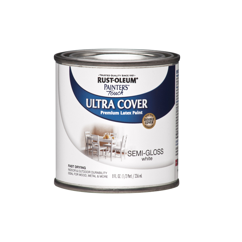 Rust-Oleum Painters Touch Semi-Gloss White Water-Based Ultra Cover Paint Exterior & Interior 0.5 pt