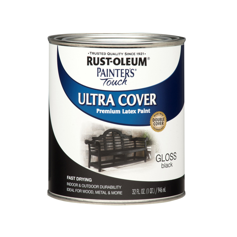 Rust-Oleum Painters Touch Ultra Cover Gloss Black Water-Based Paint Exterior & Interior 1 qt