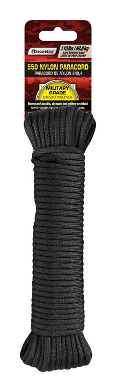 SecureLine 5/32 in. D X 50 ft. L Black Braided Nylon Paracord