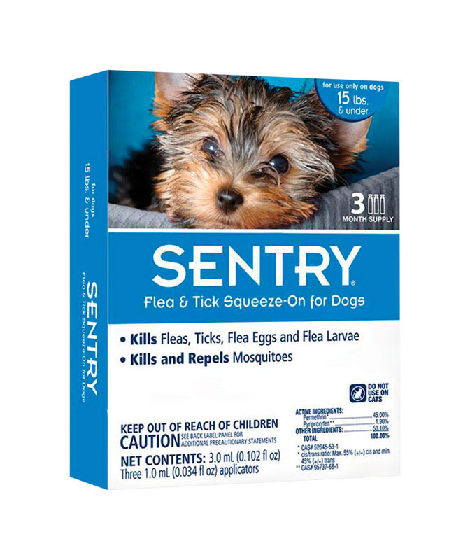 Sentry Liquid Dog Flea and Tick Drops 45% Permethrin, 1.9% Pyriproxyfen and 53.1% Other Ingredients