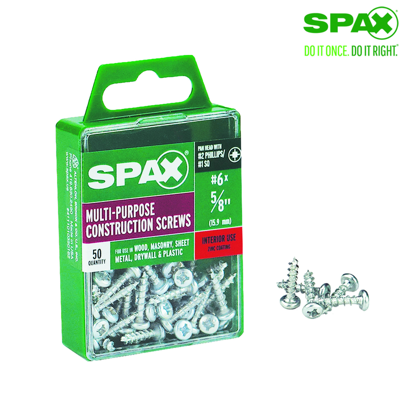 Spax No. 6 X 5/8 in. L Phillips/Square Zinc-Plated Multi-Purpose Screws 50 pk