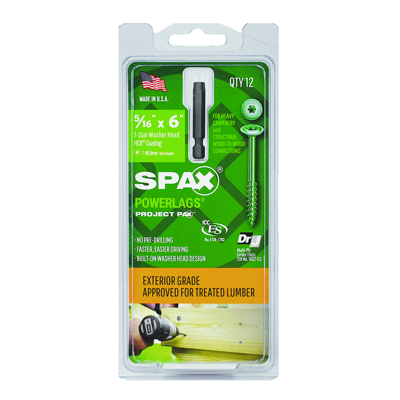 Spax Powerlags 5/16 in. in. X 6 in. L T-40 Washer Head Structural Screws 12 pk