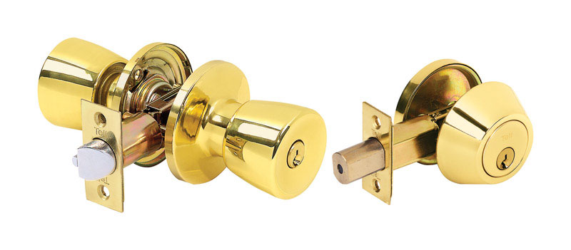 Tell Alton Bright Brass Knob and Single Cylinder Deadbolt 1-3/4 in.