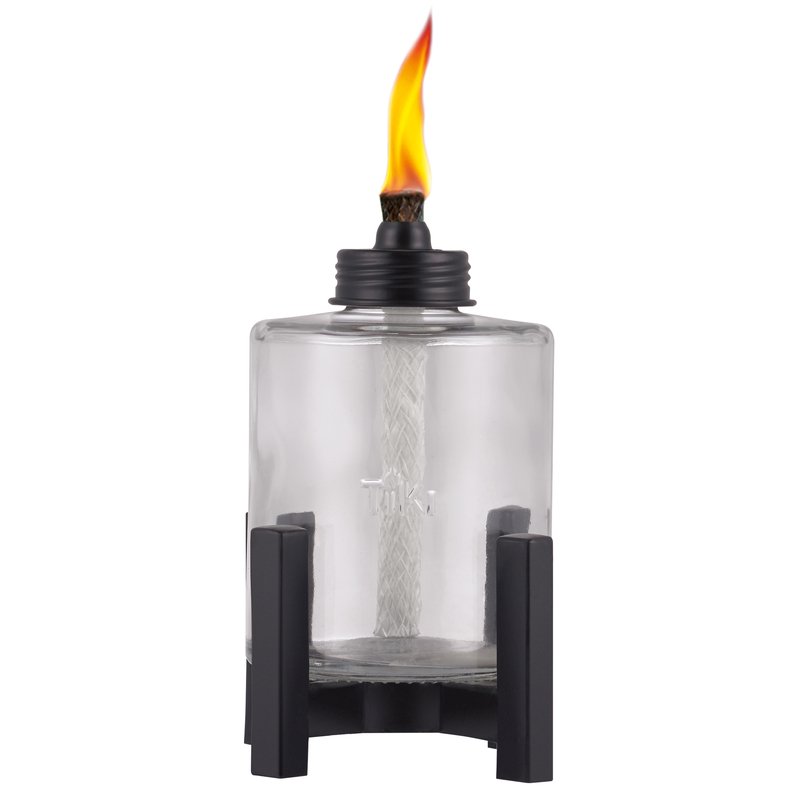 TIKI Black/Clear Glass/Metal 6.5 in. Elevated Tabletop Torch 1 pc