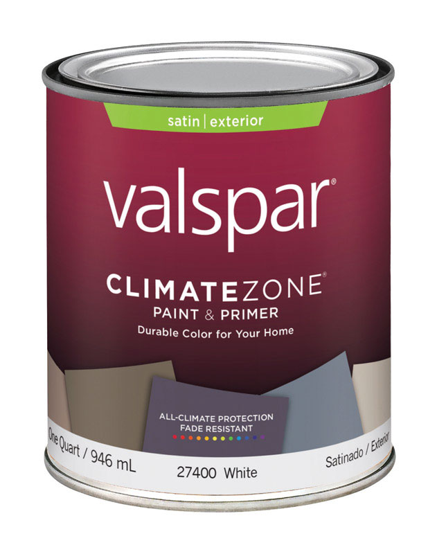 Valspar Climate Zone Satin White Paint and Primer in One Exterior 1 qt