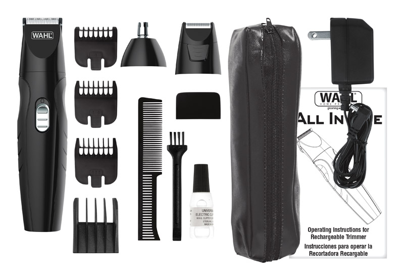 - Includes: trimmer unit, trimmer blade, ear/nose trimmer, foil shaver, standard guide combs: stubble, medium, full, 5-position guide (1/16-1/2 in.), charger, beard comb, cleaning brush, blade oil, blade guard, storage pouch, English and Spanish instr