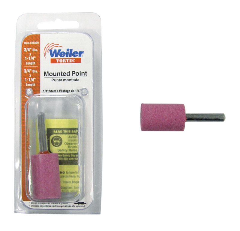Weiler Vortec 1-1/4 in. D X 0.25 in. L Aluminum Oxide Stem Mounted Point Cylinder 28000 rpm 1 pc