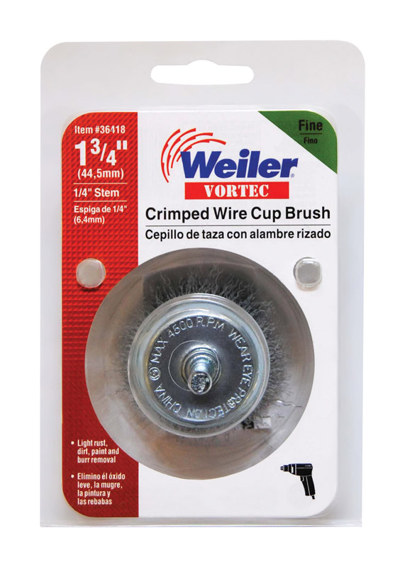 Weiler Vortec 1-3/4 in. D X 1/4 in. Fine Steel Crimped Wire Cup Brush 4500 rpm 1 pc