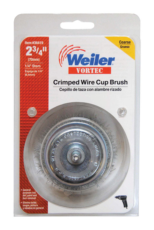 Weiler Vortec 2-3/4 in. D X 1/4 in. Coarse Steel Crimped Wire Cup Brush 4500 rpm 1 pc