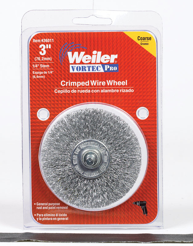 Weiler Vortec Pro 3 in. Crimped Wire Wheel Brush Carbon Steel 20000 rpm 1 pc