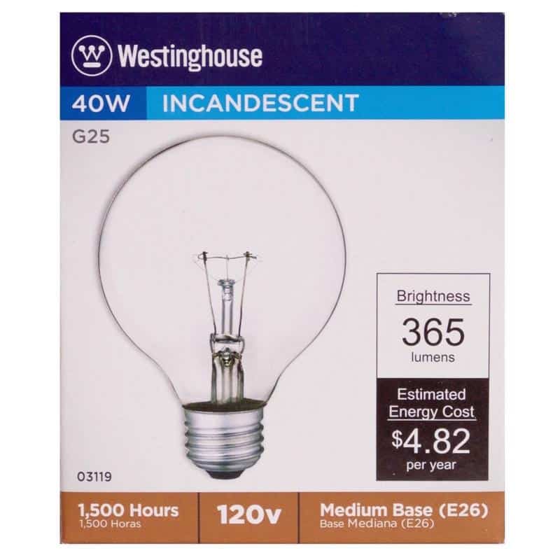 Be the first to review “Westinghouse 40 W G25 Globe Incandescent Bulb E26 (Medium) Warm White 1 pk” Cancel reply