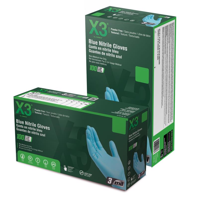 X3 Nitrile Disposable Gloves Medium Blue Powder Free 100 pk